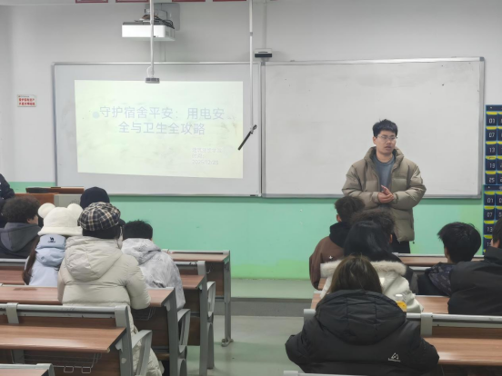 会议首先聚焦宿舍安全管理。辅导员强调,宿舍是学生日常学习与生活的重要空间,其安全与卫生状况直接关乎每位同学的健康与切身利益。在用电安全方面,会议重申严禁使用违规电器、私拉乱接电线、在宿舍内为电动车电池充电等行为,要求各班班长带头遵守并督促同学严格执行公寓管理规定,切实做到人走断电,杜绝火灾隐患。在环境卫生方面,倡导同学们自觉维护宿舍整洁,勤打扫、常通风,共同营造健康、舒适的生活环境,培养良好的集体生活习惯与责任感。