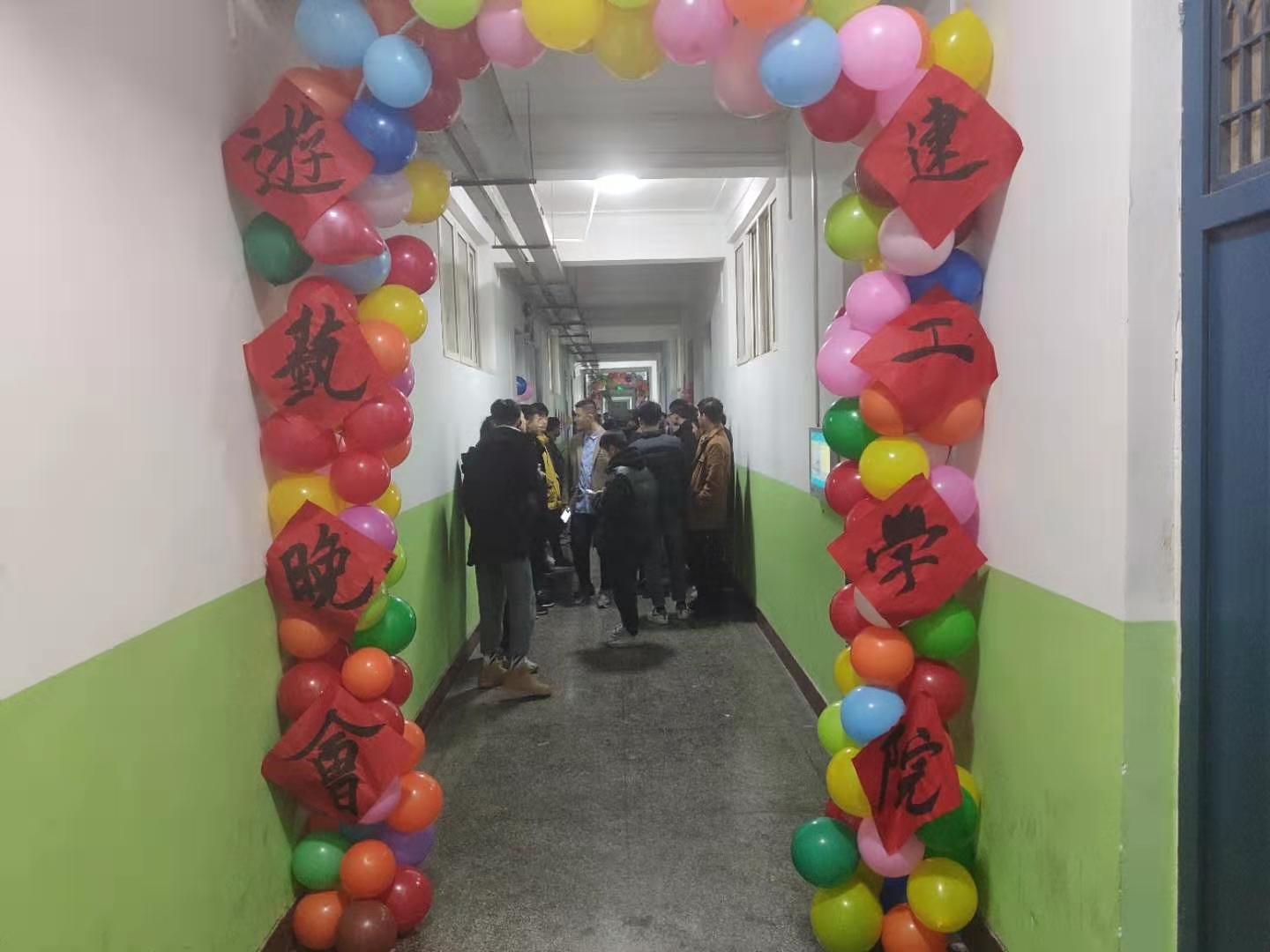 12月23日晚,建筑工程学院在教学楼四楼教室举办2020年庆元旦游艺晚会,学院书记、学工办主任、辅导员、班主任及全体学生参加了本次活动。学生会组织同学用彩带、气球装饰教室及走廊,营造了浓烈的节日气氛。