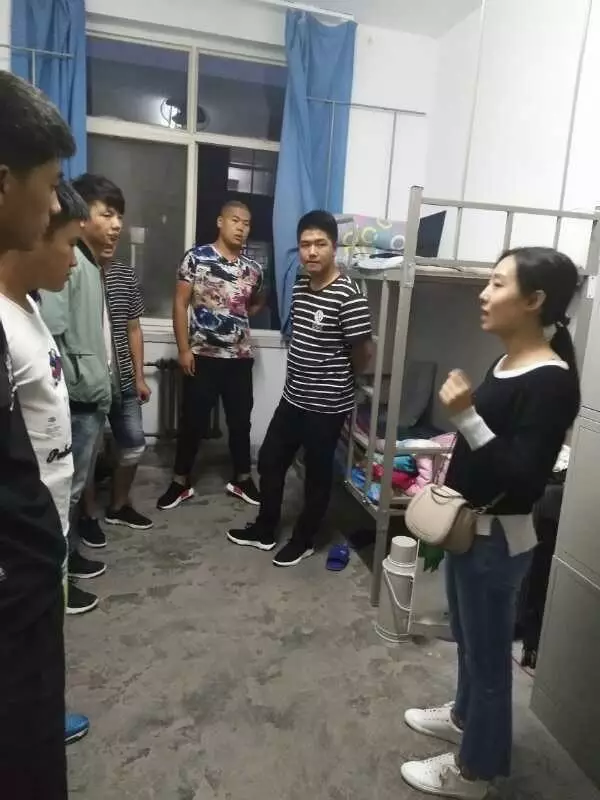 我院学工办主任苏晓春老师,辅导员杨旸、李贺老师,班主任姚睿、康俊鹏老师一行5人随同学生会公寓部部长解程,张凯深入2017届新生宿舍,与新生交谈了解学生情况,解答学生提出的专业知识、学习等问题,关心询问学生在生活、住宿等方面的困难,告知学生注意安全,鼓励学生积极适应新生活,尽早融入大学这个新环境。