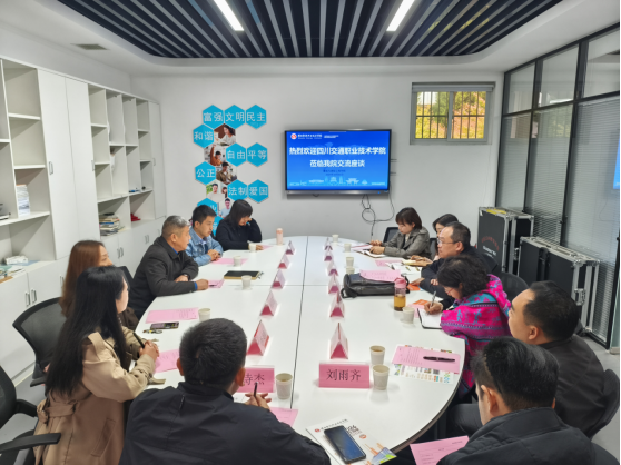 2024年10月31日下午,四川交通职业技术学院建筑工程系副主任黄宁、建筑工程系建筑教研室主任杨国利、建筑工程系装饰教研室主任杨陈慧、建筑工程系工程造价教研室主任朱榆萍一行四人,同广联达科技股份有限公司中南区域经理李明阳、方案咨询部经理刘雨齐、四川客户经理张诗杰三人来我院,就建筑行业高技能技术人才需求,学院课程设置、专业设置及办学实训、教学工作等进行交流座谈。