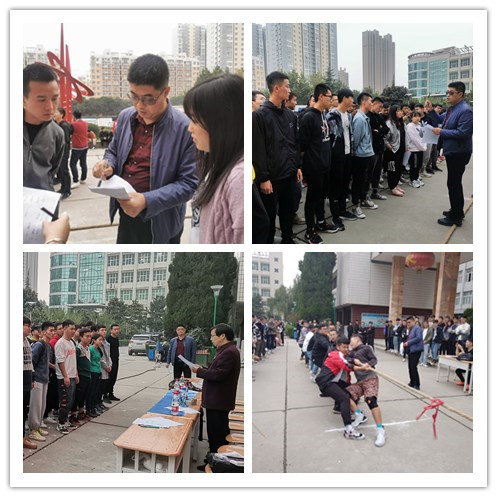 为增强学生凝聚力,培养学生团队合作能力,2019年10月24日下午四点,建工学院全体学生在1号教学楼前集合,举办“凝聚力量,团结奋进”拔河比赛。17、18、19级共计14个班级的学生参加了本次比赛,每支参赛队伍由10名男生2名女生组成。