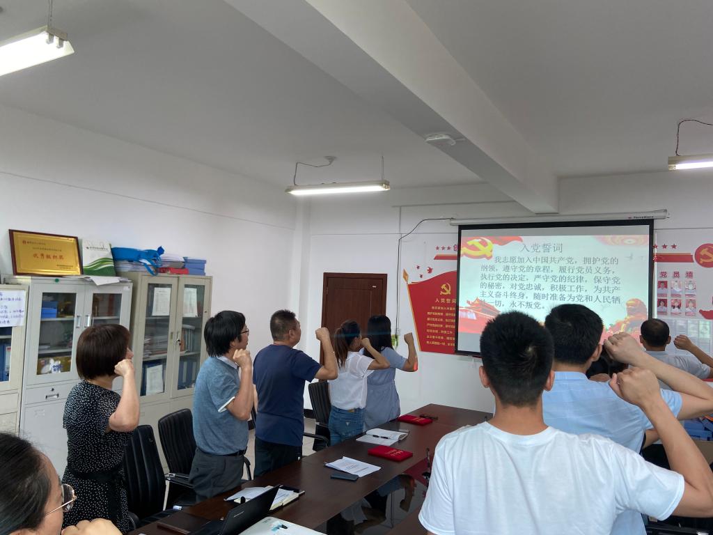 紧接着,全体师生党员面向党旗重温入党誓词,“我志愿加入中国共产党,拥护党的纲领,遵守党的章程……”在支部书记的带领下,举起右手,庄严宣誓。师生党员们有力的誓词,一字一句,神圣而豪迈,唤醒了每一名共产党员“最初的记忆”,体现了大家对中国共产党的无限忠诚和身为中国共产党党员的自豪之情