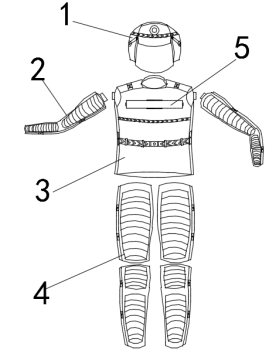 3.相较于传统防冲服功能仅作保护使用,设置有集成模块卡槽,连接固定卡扣嵌入进卡槽,具备生命特征监测、定位、气体检测、警报及实时通信等功能,实现智能联动。
