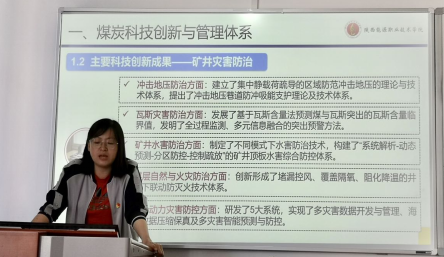 丁海英以煤炭行业的科技创新为切入点,煤炭地质勘探、煤矿灾害防治、现代化大型矿井建设、煤矿智能化与机器人、煤炭与共半生资源协同开采、煤炭清洁高效加工、煤炭高效转化利用七个方面详细阐述了主要科技创新成果。结合习近平总书记在中央财经委员会第九次会议上讲话精神要把碳达峰、碳中和纳入生态文明建设整体布局,为我院教师讲解了“3550”发展目标和“3060”碳中和约束,分析探讨了现今煤炭行业的新形势与新认识。