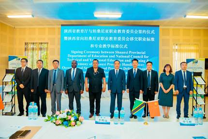 11月27日,我校代表参加陕西省教育厅与坦桑尼亚国家职业教育委员会签约仪式暨陕西省向坦桑尼亚国家职业教育委员会移交职业标准和专业教学标准仪式。陕西省委常委、省委统战部部长李明远代表陕西省将四所院校开发的煤矿开采技术人员等11个职业标准和专业教学标准移交给了阿道夫·巴比利吉·鲁塔尤佳博士。这标志着中方为坦方制定的职业标准和配套教学标准已通过坦桑尼亚职业教育委员会审核,将在坦桑尼亚进一步推广使用。同时,为未来两国教育领域的深入交流与合作奠定了坚实基础。