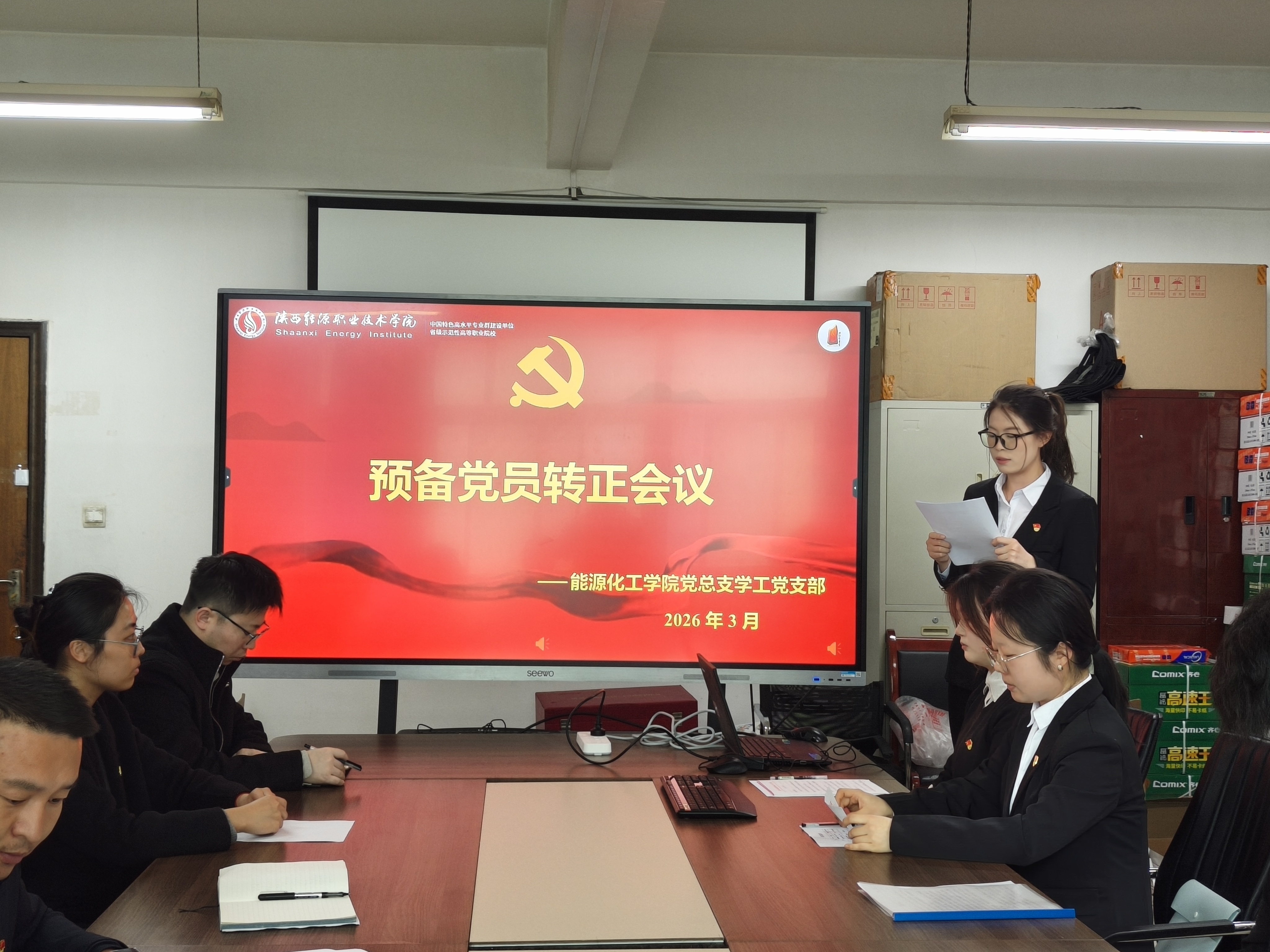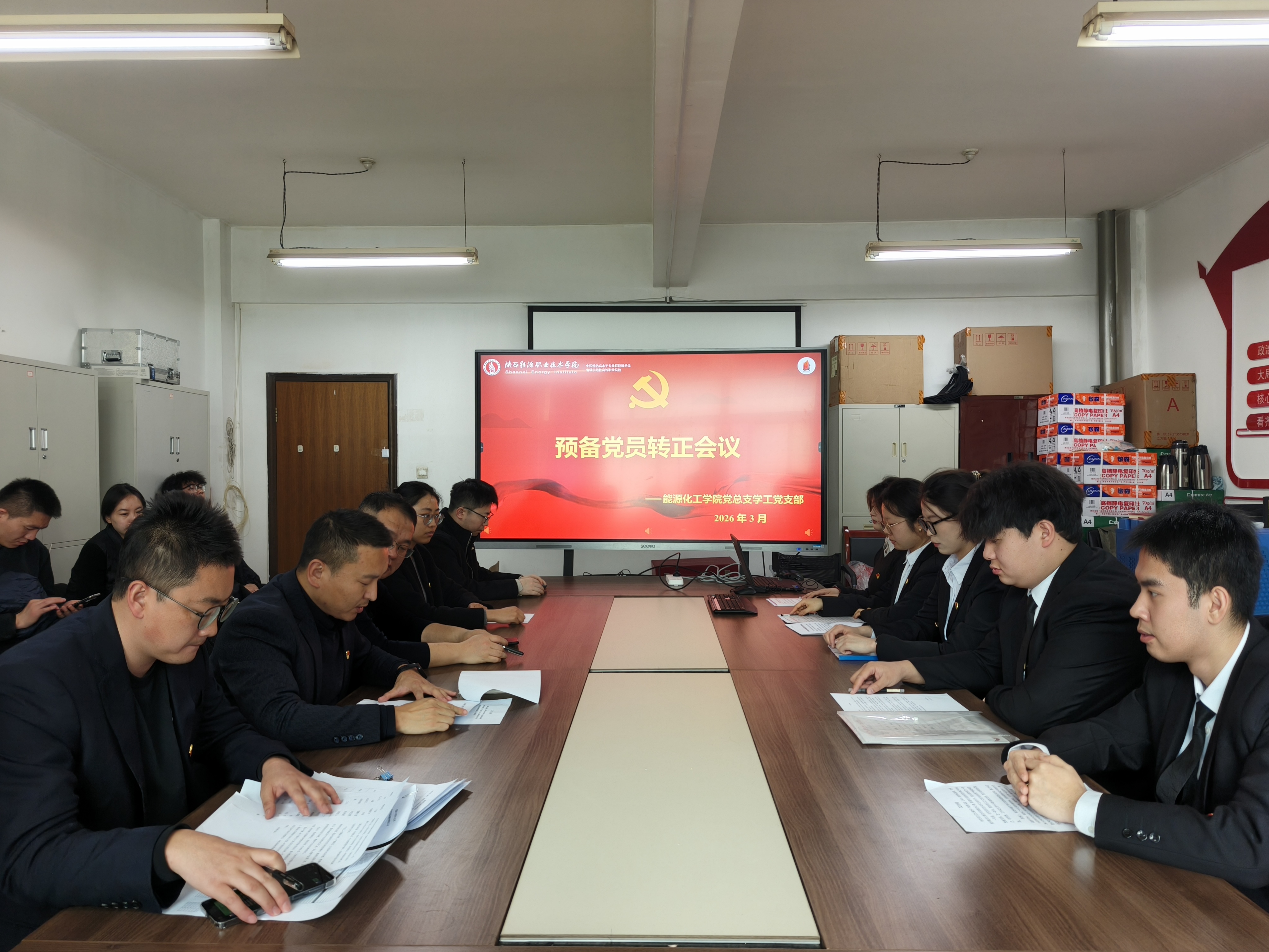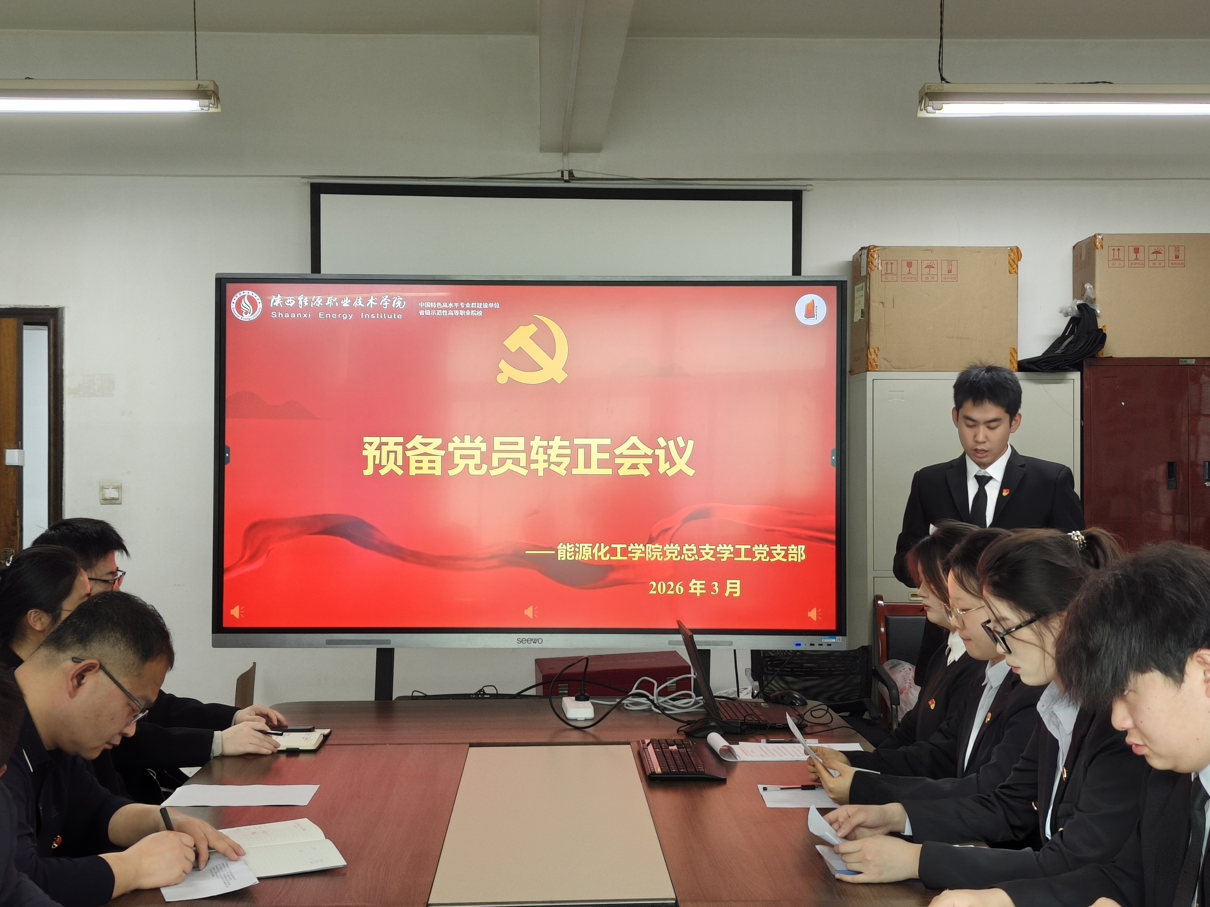 为扎实推进学生党员队伍标准化规范化建设,强化党组织凝聚力与战斗力,切实把好学生党员发展“出口关”,助力青年学生党员成长成才,3月12日,能源化工学院党总支学工党支部在学办公楼409召开学生预备党员转正大会,专题讨论并表决学生预备党员转正事宜。支部全体正式党员、学生预备党员参会,会议由支部书记李鹏主持。