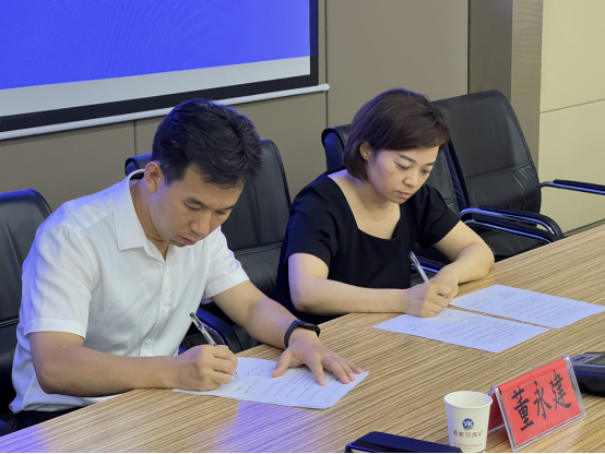最后在与会人员共同见证下,董永建、刘彦锋、刘苗共同为“大思政”实践育人基地和“校企共建”劳动育人基地揭牌,董永建和刘苗分别代表校企双方签署实践育人基地协议。