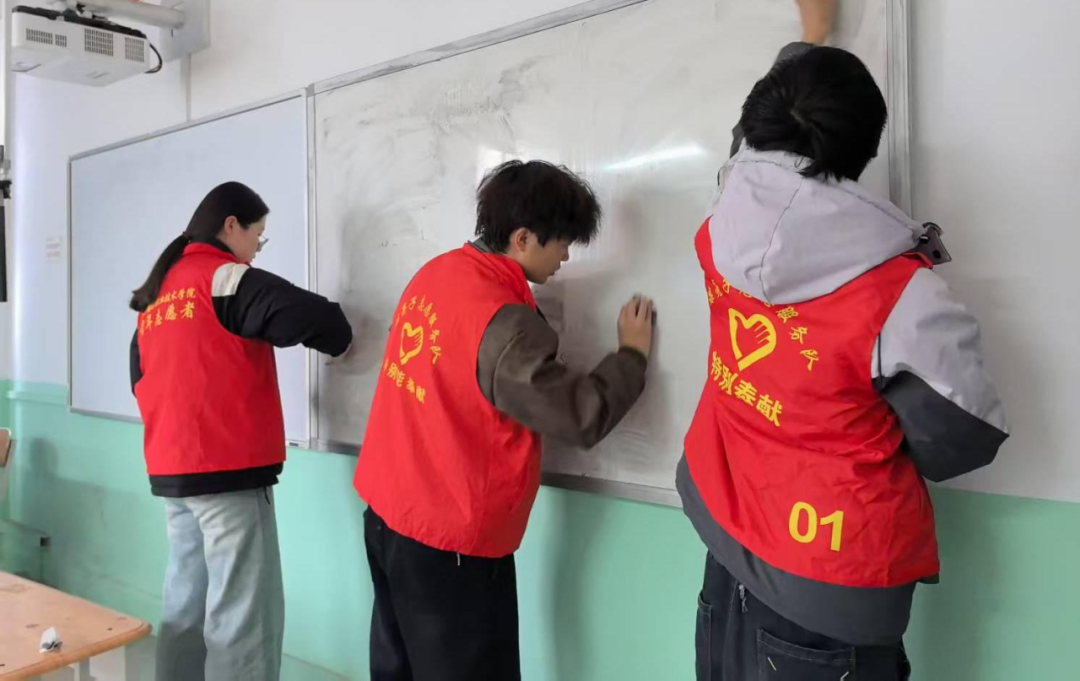 3 月 23 日,20 余名志愿者开展“净尘行动”,对培训楼、西裙楼的公共教室进行彻底清洁。他们分工协作,对教室的地面、桌椅、黑板、窗台等区域进行了细致的清洁。经过一个多小时的辛勤劳动,光洁的地面、摆放整齐的桌椅、干净明亮的黑板成为雷锋精神“劳动最光荣”理念的最佳注脚。