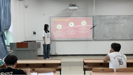 活动现场,四位优秀同学结合PPT分别从不同角度分享了成长历程:第一位同学讲述了参与红色文化实践活动的深刻体会;第二位同学分享了参与社区志愿服务的心路历程;第三位同学展示了参与大学生科技创新项目的收获与感悟;第四位同学则从学生干部的角度,分享了在服务同学中实现自我成长的经历。四位同学的分享生动诠释了中国式现代化建设中青年的责任担当,展现了新时代青年学子积极向上的精神风貌。在场同学纷纷表示,要以优秀同学为榜样,在学习和实践中不断提升自我,争做新时代的有为青年。
