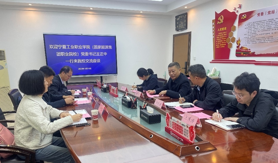 10月16日,宁夏工业职业学院(国家能源集团职业学院)党委书记王正中率教务部部长、化工系教师一行,赴我校进行交流与学习。我校党委书记刘予东、教务处、双高建设与督导办公室、能源化工学院等部门相关负责人接待并出席了交流活动。