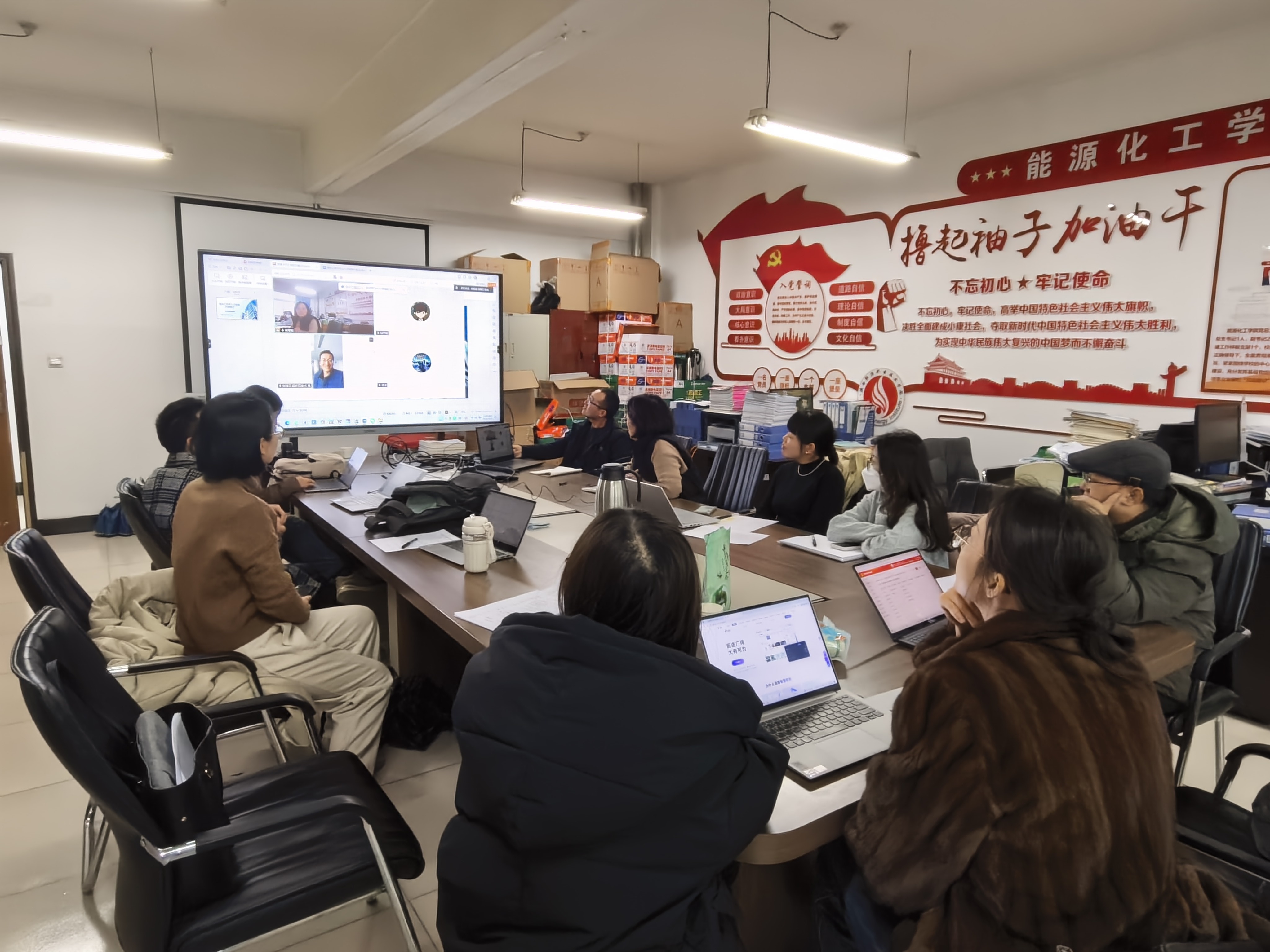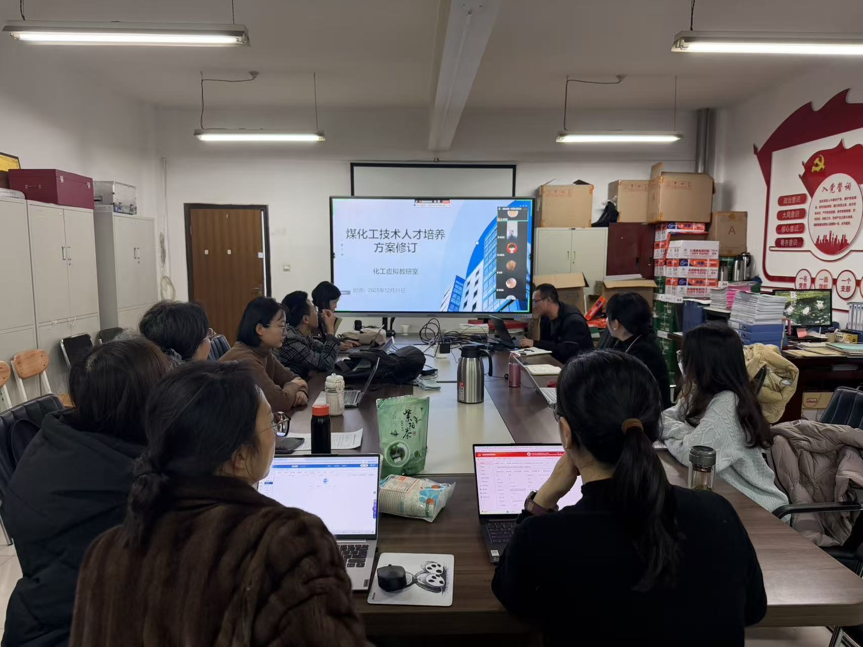 为深入推进双高建设援疆帮扶任务落地见效,切实以党建引领职业教育高质量发展,构建“党建+业务”深度融合的帮扶模式,2025年12月31日,我方与新疆阜康职业技术学院以“线上(腾讯会议)+线下”相结合的方式,在开展煤化工技术人才培养方案修订专题研讨的基础上,同步开展党建学习交流活动。陕西延长石油集团有限责任公司正高级工程师张锋三、阜康职业技术学院陈平老师、我校宋军旺、贾雪梅等教师代表参与此次“党建+业务”融合交流活动,有效推动了双方党建经验互鉴与专业建设协同。