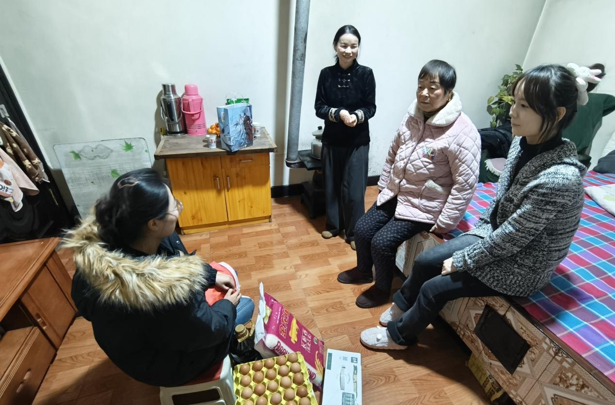 走访中,学院党总支书记陶燕一行向学生家庭送上生活物资,并与他们亲切交流,详细了解家庭健康状况、经济来源和地方帮扶情况,认真倾听家长对学校资助、学业和就业支持等方面的想法与建议。同时,走访团队也向家长介绍了学院的助学政策与成长支持安排,鼓励学生保持积极心态,视困难为历练,脚踏实地、努力学习。