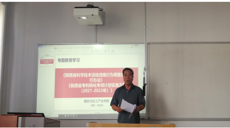 为加强师德师风建设,强化科学技术活动违规行为的理解,促进教师专利成果转化,5月19日,煤炭与化工产业学院在教学楼413教室开展学习《陕西省科学技术活动违规行为调查处理暂行办法》专题会议,煤化产业学院全体教职工参加,会议由煤化产业学院院长李志主持。
