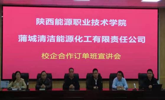 为进一步深化产教融合,推进校企合作,全面提高化工类学生就业质量, 10月9日上午10点,煤化学院在办公楼文林大讲堂举行“蒲城清洁能源订单班”宣讲会,蒲城清洁能源化工有限责任公司人力资源部副部长唐党朝、招聘主管田源、社保主管王小婷、学校校企合作处处长于涛、煤炭与化工产业学院院长李志、副书记周少丽、副院长王前进、化工教研室教师、辅导员及2020级应用化工、煤化工专业学生共98人参加会议,会议由于涛主持。