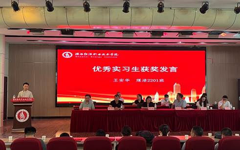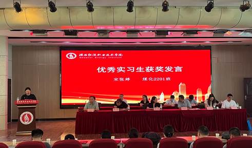李炜怿宣读优秀实习生、实习指导教师表彰决定,对宋张婷等17名优秀实习生及翟晓燕等8位优秀实习指导教师予以表彰。优秀实习生通过分享在企业实践的成长故事,对母校、学院及老师的付出表达感谢,也对学弟学妹给予了建议和寄托。