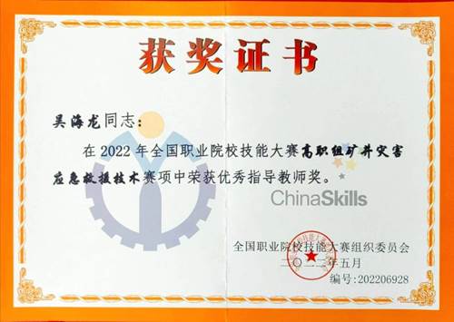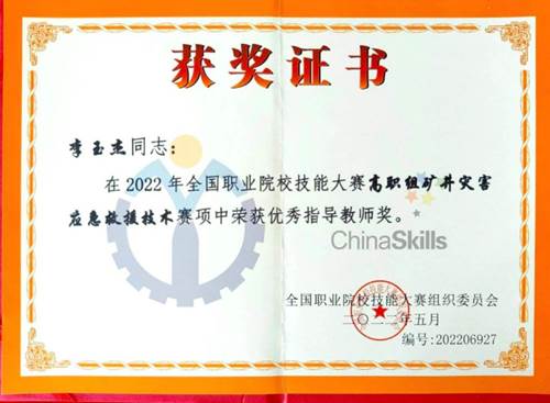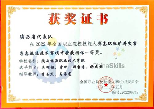 8月16日至19日,2022年全国职业院校技能大赛高职组矿井灾害应急救援技术赛项在云南能源职业技术学院举行。来自全国21个省、自治区、直辖市院校的35支参赛队伍140名选手参与此次比赛。在学校党、政领导及二级学院领导高度关注和支持下,指导教师细心指导,参赛选手努力拼搏,我校参赛队荣获国赛一等奖,这是我校第二次在该赛项获得一等奖!