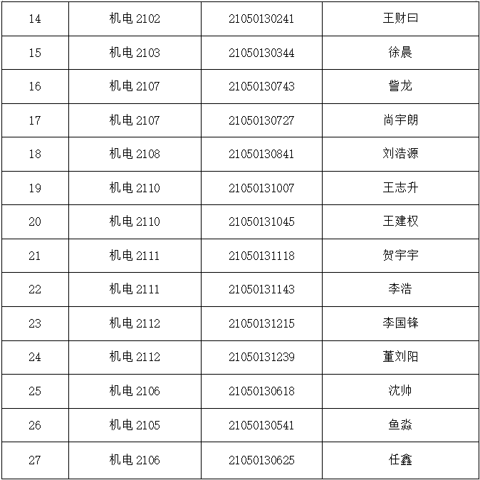 根据学校《陕西能源职业技术学院优秀毕业生评选办法》,我院2024届优秀毕业生评选工作在学院评审工作小组领导下,严格评审程序,坚持公正、公平、公开原则,按照“个人申报-班级民主评议-学院审核 ”等程序,已评出2024届学院优秀毕业生27人,名单公示如下: