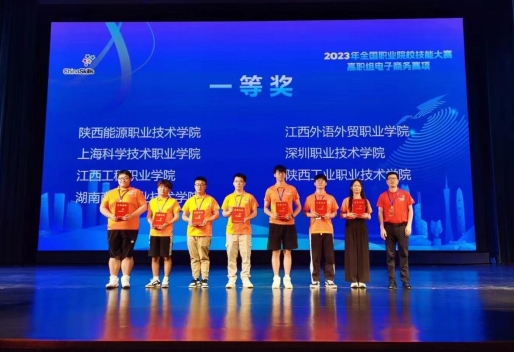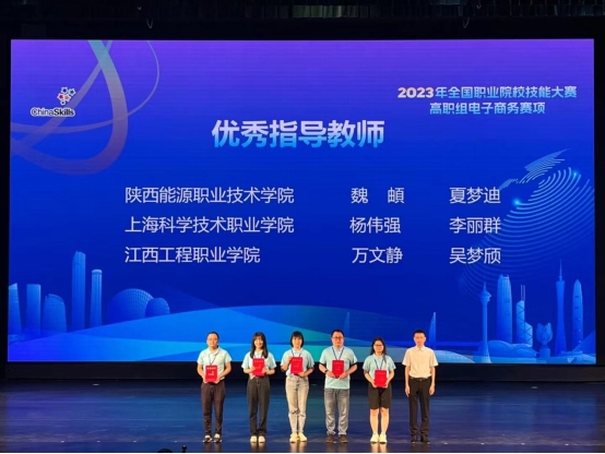 2023年7月25日至7月26日,2023年全国职业院校技能大赛“电子商务技能”赛项(高职组)比赛在广东科学技术职业学院(珠海校区)举行。经过激烈角逐,由我校经济管理学院魏頔、夏梦迪两位老师指导,电商2001班缑鑫龙、苏晨鹏、电商2202班李娜、数媒2101班申佳佳,4名同学组成的陕西代表队斩获全国第一名团体一等奖的好成绩。魏頔、夏梦迪两位老师荣获全国优秀指导教师奖。