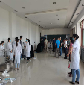 第二项活动是参观实验室,实训一科科长马立荣同志带领实践教学管理处二十几位老师参观了化工、药剂专业实训室,在化工实验员唐晓名老师的讲解下,老师们分别参观了精密仪器室、显微观察室等专业课实验室,以及药品存放库房,唐老师详细介绍了化工药剂实验室的特殊性和准入制度,以及安全管理办法。