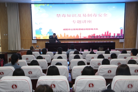 咸阳市公安局渭城分局禁毒大队教导员师毅作讲座