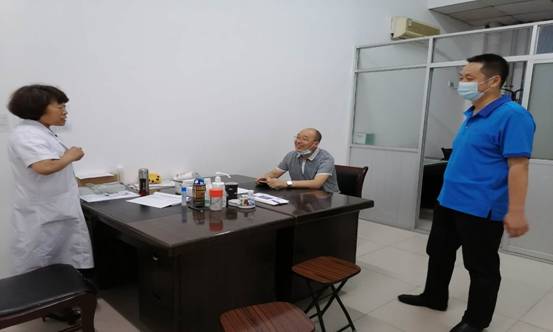 在检查完教室和宿舍之后,任向明副书记又来到了校卫生所,由李改凤所长讲解了卫生所近期处理发热学生的具体措施和卫生所值班的落实情况。