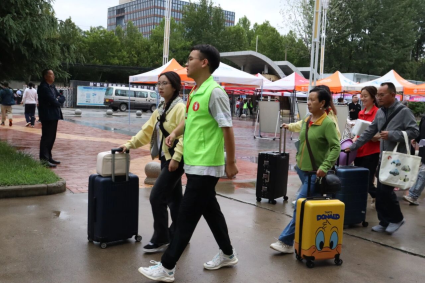 各职能处室及各二级学院协同联动、精心组织、周密安排迎新工作,为新生提供 “一站式” 便捷服务。报到现场,迎新各项工作井然有序,迎新工作人员和志愿者早早地赶到了校门入口和迎新点,新生在学生志愿者的引导下依次有序进入校园。机关党总部号召组织全体党员与学生志愿者全程帮助新生搬运行李、办理入学报到手续,为新生及家长提供细致入微的服务。为切实助力家庭经济困难新生顺利开启校园生活,学校在迎新点设立入学“绿色通道”,提供国家资助政策咨询等服务,以贴心举动为新生入学保驾护航。