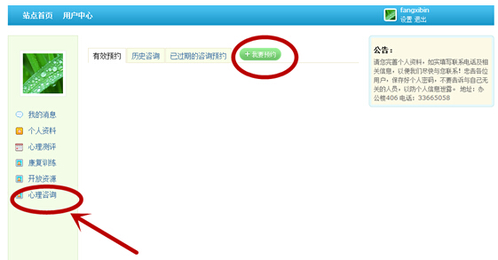 第八步,选择心理咨询,可进行咨询预约服务。