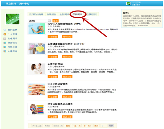 第四步,进入心理测评系统,点击注册新用户