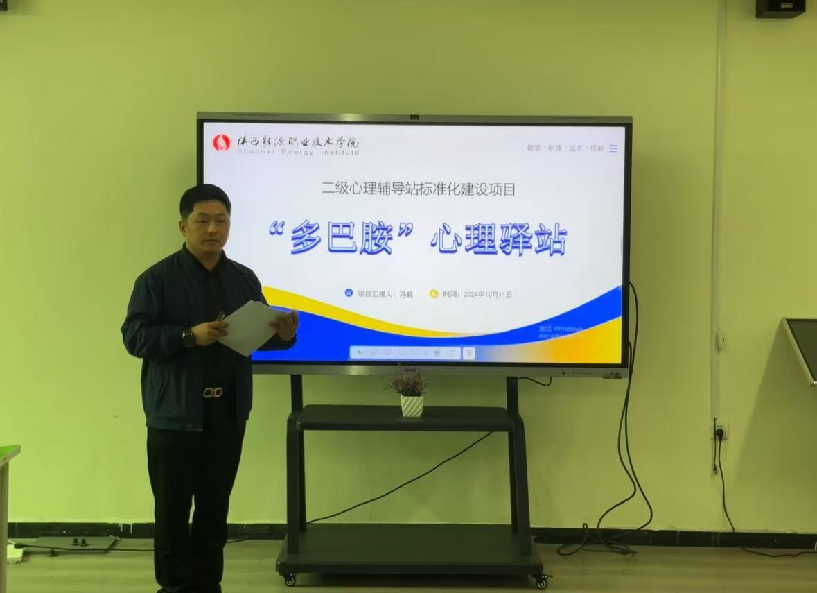 10月11日下午,我校在培训楼209团辅室召开了二级心理辅导站立项评审会。校党委副书记任向明、咸阳职业技术学院心理中心主任苏晓奇、学工部副部长王晶、智信学院党总支副书记冯帅及心理中心主任赵蓓担任专家评审小组成员,现代康养学院心理辅导员田冲作为首批立项“明心驿站”二级心理辅导站成员代表进行经验交流分享。此次接受立项评审的分别是建筑与测绘工程学院、经济管理学院、医学技术学院及人文与教育学院二级心理辅导站,各二级心理辅导站负责人和心理辅导员参加立项评审会。