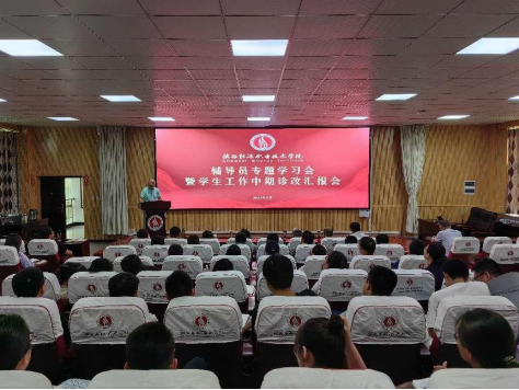 为深入贯彻落实国家现代职业教育高质量发展和深化新时代教育评价改革的精神,促进学生素质全面提升,5月22日下午,我校在办公楼4楼文林大讲堂召开辅导员专题学习会暨学生工作中期诊改汇报会。校党委副书记任向明、学生处、团委负责人及相关工作人员、各二级学院(副)书记、学工办主任、全体辅导员等近100人参加会议,会议由学工部部长冯超主持。