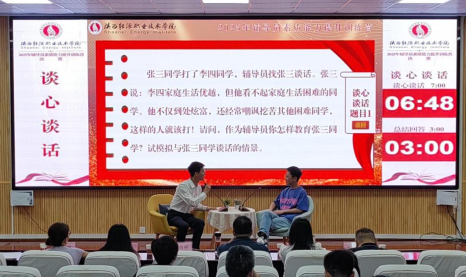 全校辅导员前期经过二级学院选拔推荐、基础知识测试环节后,10名辅导员入围决赛。决赛设置学情分析、案例研讨和谈心谈话三个环节。在基础知识测试环节,通过党的创新理论、相关方针政策等内容,全面考察辅导员的政治素养与理论功底;学情分析环节主要考察辅导员对所带学生基本情况的熟悉程度;案例研讨环节主要考察辅导员综合运用理论分析问题、研判问题、解决问题的能力;谈心谈话环节则直观考核辅导员解决学生实际问题的能力与水平,充分展现高校辅导员的职业素养、沟通技巧与育人智慧。