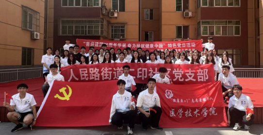 5月16日上午,医学技术学院学工党支部前往秦都区人民路街道二印社区开展“喜迎建国75周年华诞 奋力绘就健康中国”特色党日活动。二印社区党支部书记王卓、咸阳新投公司党委副书记成钢、医学技术学院党总支副书记冯毅、医学技术学院学工党支部书记蒋文,以及学工党支部师生60余人参加活动。