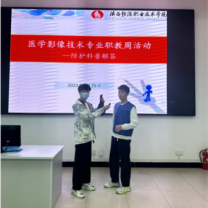 本次活动以职业生活中的辐射与防护为主,从“什么是辐射、X线辐射的用途和危害、X线辐射的安全和防护”等方面向师生们进行简单的讲答,并针对日常生活中电离辐射的有效防护和措施为师生提出了建议,最后通过防辐射服铅衣的穿戴及DR实训室设备的操作及讲解和学生们进行了积极的互动,让学生深刻感受到辐射技术与日常生活、身体健康的紧密联系。