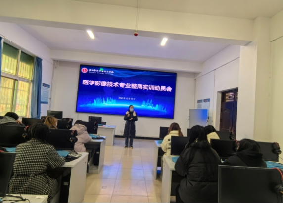 2023年12月15日下午,医学影像技术专业整周实训动员会在第二实训楼虚拟仿真实训室开展,影像教研室主任李欢、教师张娜、郭小玲、影像22级班长、学委及学生代表参会。