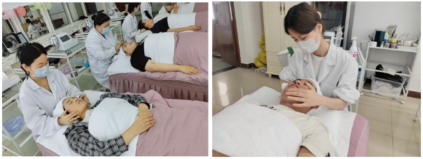 在面部按摩与护理环节,学生们用娴熟的专业手法按摩体验者面部,让体验者感受到舒适与放松。整个活动过程中,学生们耐心地为体验者解答各种疑问,主动关心体验者的感受和需求,学生们热情洋溢的服务态度,深受广大师生的好评。