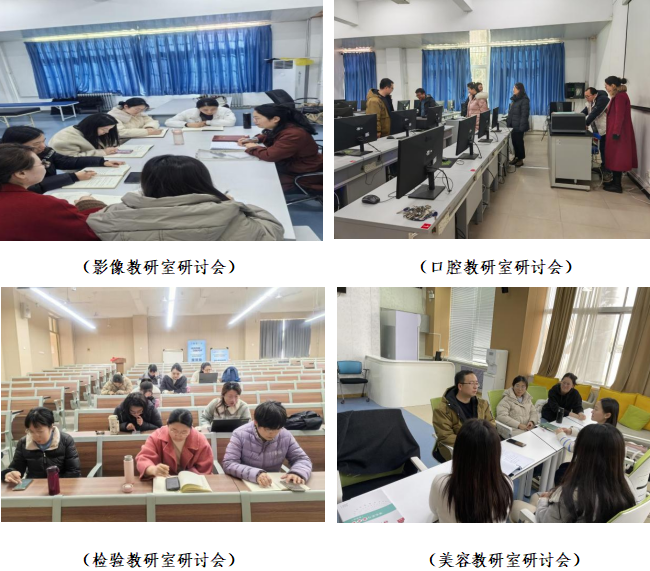 各教研室围绕专业建设、人才培养和实验室规划等议题展开深入研讨。首先,影像教研室主任李欢分析了医学影像技术专业的发展趋势,强调人才培养方案需与时俱进,注重理论与实践结合,完善课程体系,提升学生实践能力和创新意识。会议要求教师严格遵守教学纪律,运用数字化工具,并加强对实习生的管理,确保实习任务顺利完成。口腔教研室聚焦“人才培养方案修订”和“实验室建设规划”,讨论了2024级口腔医学技术专业课程体系优化、实践教学强化和校企合作深化等议题,重点就数字化口腔技术等特色模块达成共识。张多强调,人才培养要对接职业标准,提升学生竞争力。会议还明确了实验室建设规划,重点推进数字化实训室升级,构建三级实践教学体系。检验教研室主任高瑞君解读了医学检验技术专业教学标准的新要求,与会教师就课程目标、教学设计等内容展开交流,提出优化建议,为教学改革与专业发展指明方向。美容教研室围绕新标准研读、2025级人才培养方案修订、实习就业对接及实训室管理展开研讨。会议提出增设数字化皮肤管理等前沿课程,强化实践教学与岗位能力衔接,深化校企合作,规范实训室安全管理。
