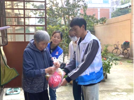 青年志愿者发放健康宣传资料,与老人们面对面促膝交流,开展血压测量、颈肩推拿、腧穴艾灸、健康咨询服务,给予健康饮食、营养膳食等方面的建议;携带慰问品前往数位贫困老人家庭,聊近况、话家常,了解家庭生活和身体健康状况,讲解常用医疗康养保健知识,身体力行为老人们送上关怀和温暖。