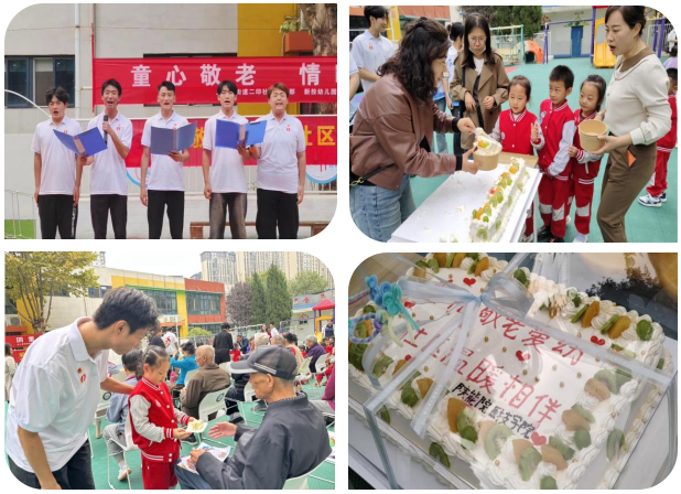 本次敬老活动主要分为文艺演出和康复义诊两类。志愿者们首先朗诵了毛泽东诗词《采桑子•重阳》,表达着对老年朋友的节日问候,老人们激动地勉励青年“珍惜韶华,学好技能,努力为国家作贡献”。为老年朋友和小朋友们送上的节日蛋糕,既体现了青年大学生的暖心祝福,也让陪伴更具仪式感。