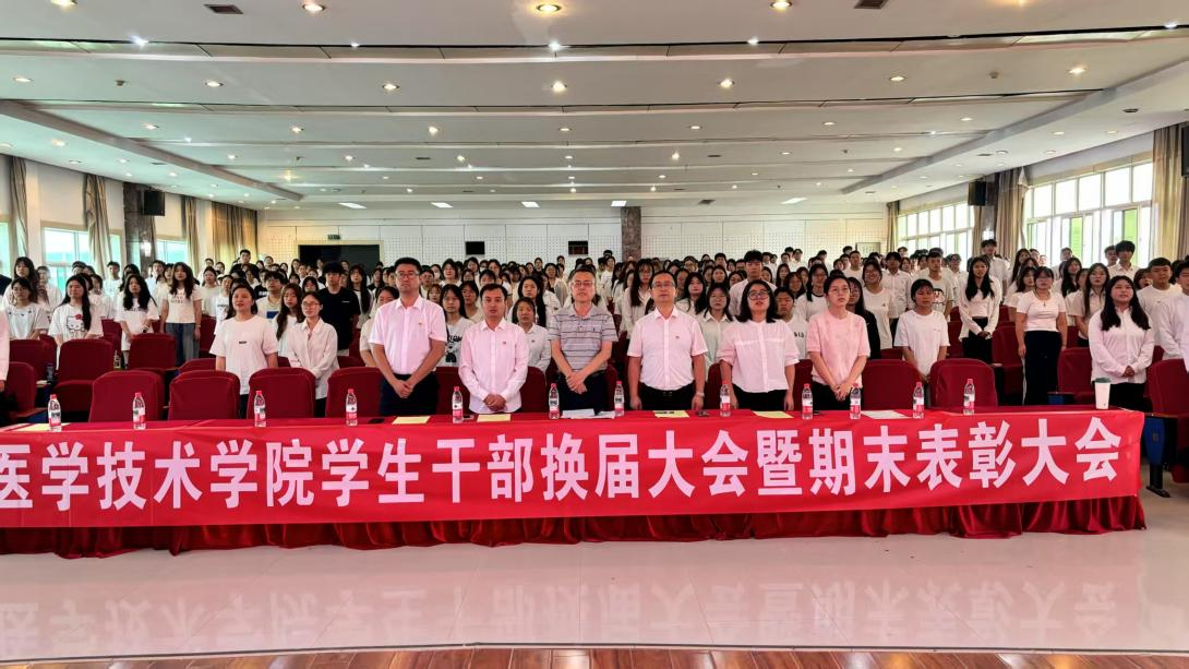 6月25日中午,医学技术学院学生干部换届大会暨2024 - 2025学年第二学期表彰大会在实训楼六楼报告厅隆重举行。学院党政领导、学工老师及各班级学生代表共计300余人参会。学院团委副书记刘康主持。