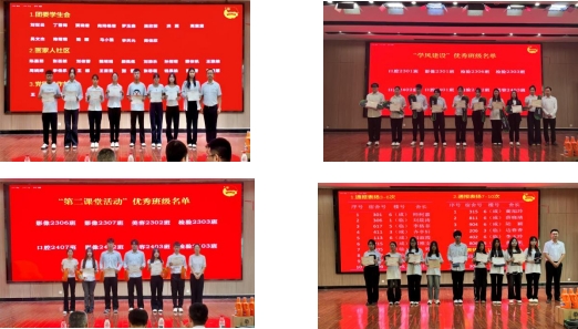 辅导员伊龙、王怡丹、冯前翰分别就“学在能源”学风建设中表现优异班级和“净尘行动”中的17间文明公寓进行表彰。