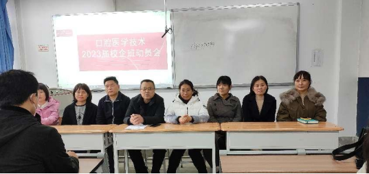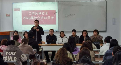 为了进一步增强校企班学生的责任意识,快速适应校企班的学习和生活,2月20日,口腔医学技术专业在教学楼109召开2023届校企班动员会。学院党总支书记巩明发、副书记韩晓磊、副院长李蕊、梁爽、教学办主任赵星、学工办主任郑倩、口腔教研室教师、口腔2023届校企班辅导员及全体同学50余人参会。会议由口腔教研室主任董伟主持。