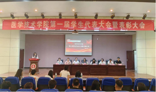 为深入学习贯彻党的二十大精神,团结引领广大青年学子奋进新征程、建功新时代,6月8日中午,医学技术学院第一届学生代表大会暨表彰大会在实训楼6楼报告厅隆重举行,医学技术学院党总支副书记韩晓磊、副院长李蕊、综合办主任王瑞娟、教学办主任赵星、学工办主任郑倩、全体辅导员及学生代表共计180人出席本次会议,会议由医学技术学院团委书记师怡子主持。