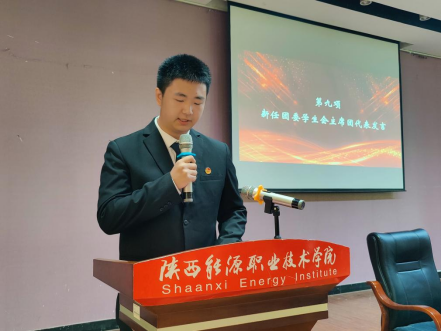 艾明冉代表新一届学生会干部表态发言,他表示学生会将不断加强自身建设,牢记“全心全意服务广大同学”的宗旨,广泛开展各种内容丰富、健康向上的活动,以服务和引导广大学生的成长成才、全面拓展大学生素质教育为己任,营造良好的学风、院风。