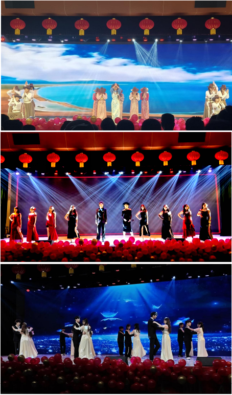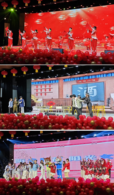 晚会以“青春绽放、艺彩纷呈、情怀共鸣、同心致远”四大篇章铺展,节目形式多元、亮点迭出。《我的未来式》《元气舞剧》跳出青春朝气,《爵士串烧》《别叫我达芬奇》燃动全场氛围;教工节目《洛春赋》尽显雅致韵味,学工节目《最炫民族风》传递民族豪情,《次仁拉索+新疆舞》串联起多元文化风情。小品《事情是这样的》《反诈联盟》以幽默笔触传递生活智慧与正能量,朗诵《如愿山河,吾辈当歌》抒发青年担当,《医技风尚秀》展现医技学子的专业风采与时尚态度。最后,晚会在《相亲相爱》的温馨旋律中落下帷幕,定格师生同心的美好瞬间。