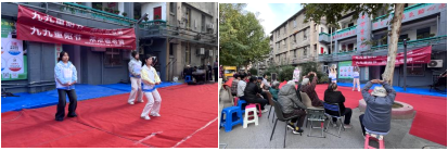 八段锦表演环节,志愿者们动作舒展、节奏舒缓,指导老人学习基本招式,帮助老人通过简单运动舒缓筋骨、调养身心,现场互动频繁,笑声不断。